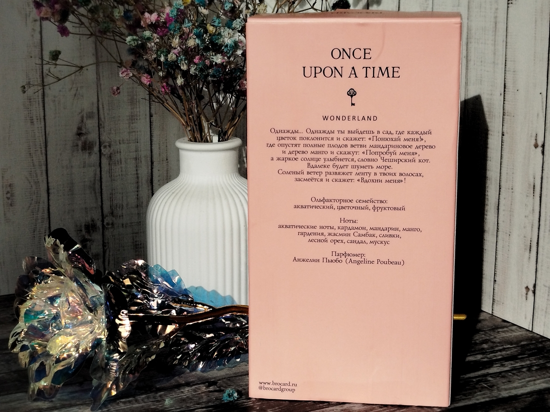 Я люблю линейку Brocard Once Upon A Time, она отличается отличным качеством — ароматы более стойкие и шлейфовые, чем многие более бюджетные линейки этого бренда. Wonderland я приобрела без затеста, на свой страх и риск. Отзывов на этот аромат мало, но меня это нисколько не смутило.