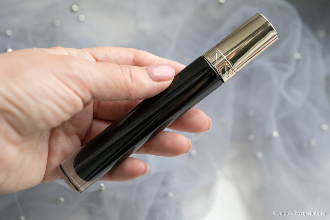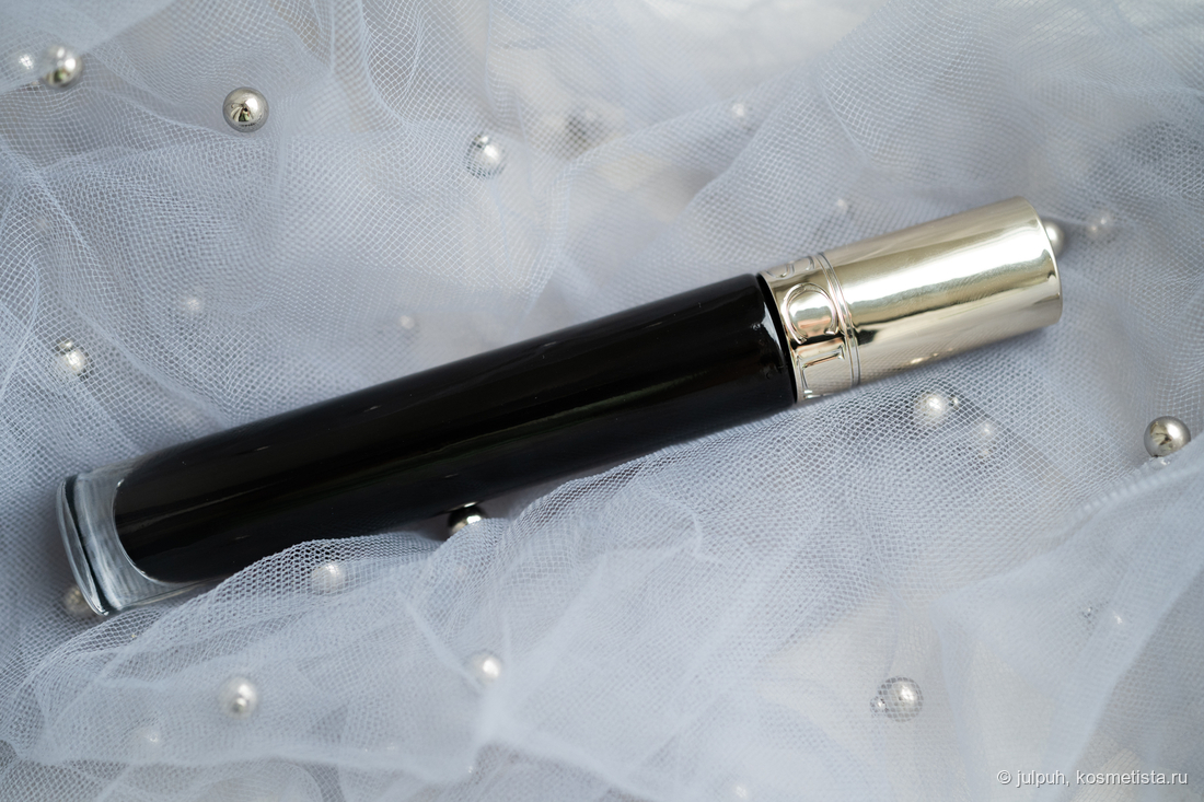 В плане упаковки бренд немного удивил – тушь в стекле! Это очень красиво и тактильно приятно на ощупь. Флакон тяжеленький и добротный. Но лично у меня есть сомнения на счет долголетия туши, так как не могу назвать себя ловким человеком, не исключаю падения туши. Проверять крепкость флакона не буду, на всякий случай кладу продукт максимально далеко от края стола или в подставку для косметики. Еще непривычно, что на корпусе нет никаких надписей, красиво и строго.