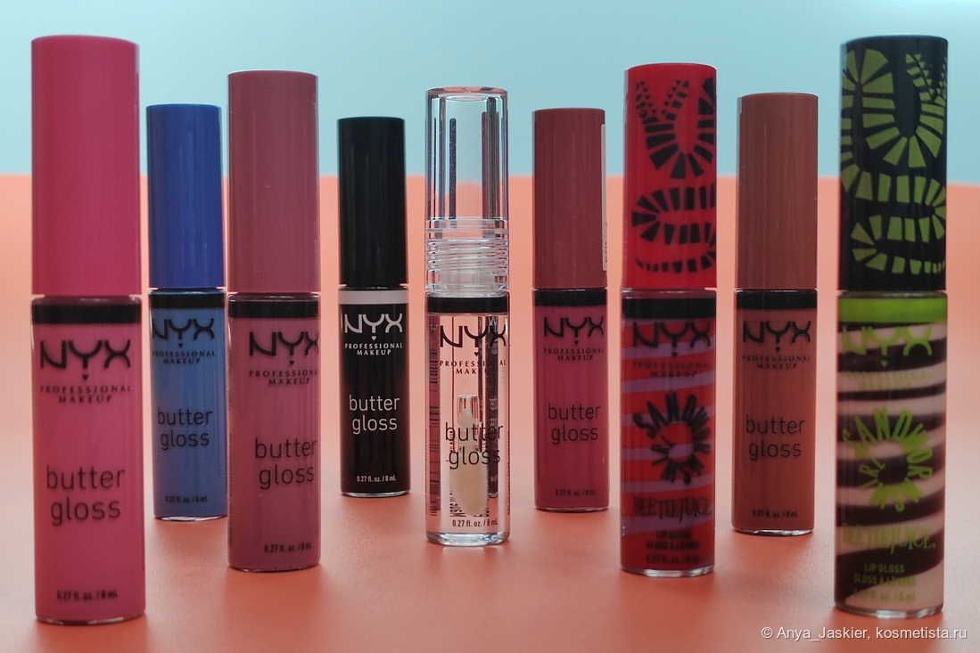 Всем привет! С брендом Nyx у меня сложилась огромная многолетняя любовь, продолжающаяся до сих пор. Примерно половину моего косметического шкафа составляют продукты от Никс, в частности, из-за того, что я скупаю понравившиеся линейки чуть ли не целиком — или, по крайней мере, бодро двигаюсь в этом направлении. Так случилось и с блесками из серии Butter Gloss — на месте одного закончившегося тут же появляются три новых. Как гидра, честное слово!