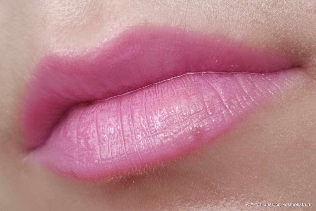 Возвращаюсь к более носимым нюдам. Под номером 04 основной линейки нас ждет холодный светло-розовый цвет. Классический барбикор в светлом исполнении не выбеливает губы и почти не подчеркивает складки. При естественном теплом освещении очень сильно хамелеонит в приглушенный розовый. Тинтует.