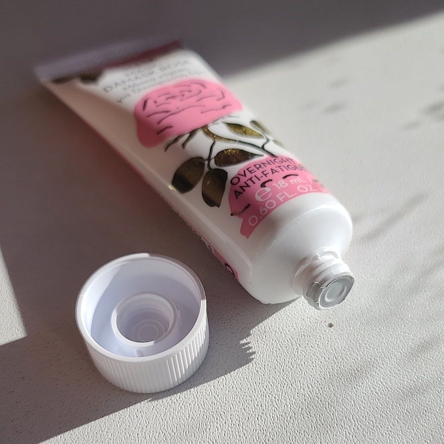Маска с экстрактом дамасской розы. Наношу 1-2 раза в неделю на ночь, утром смываю. Кожа после неё выглядит отдохнувшей, свежей и сияющей. Отличное средство для борьбы со следами усталости.