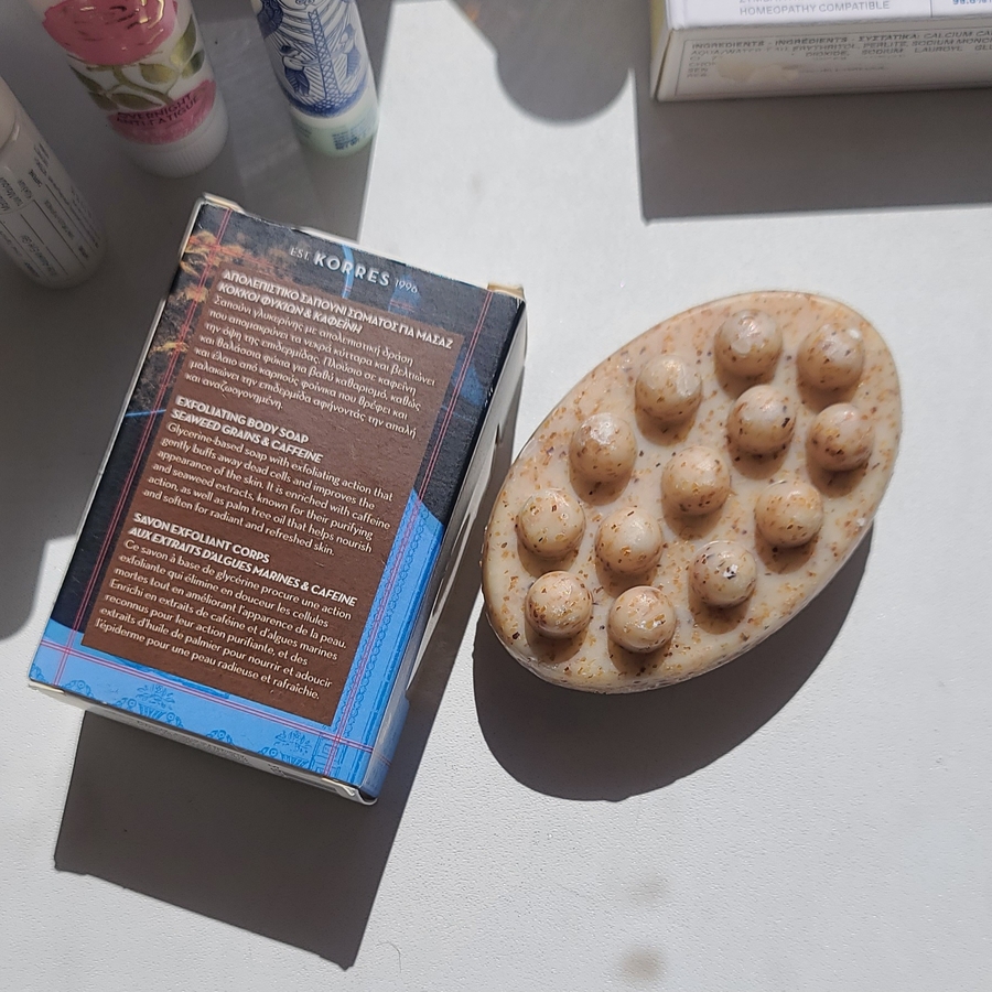 Korres массажное и отшелушивающее мыло с перетёртыми морскими водорослями и кофеином