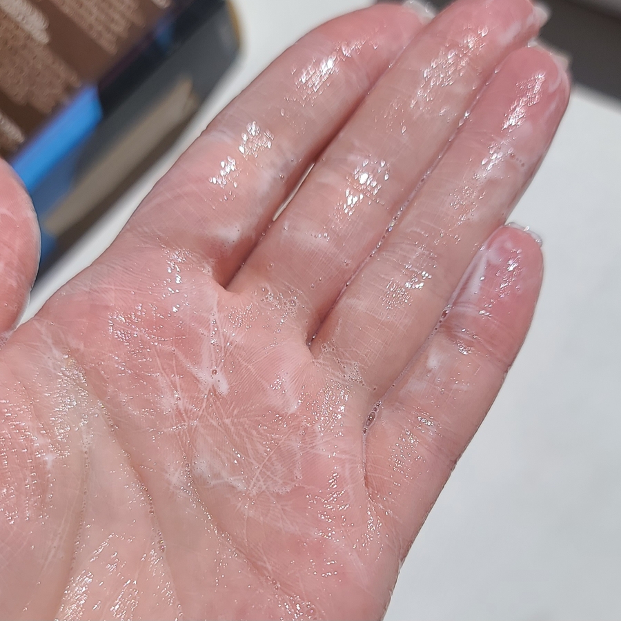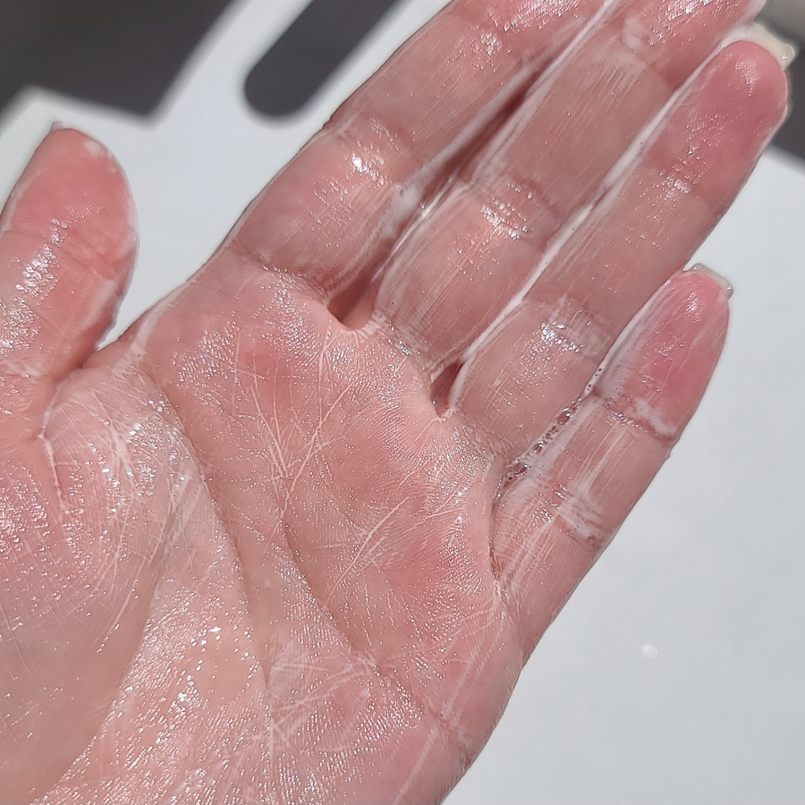 Текстура у геля приятная, средней густоты. Он отлично пенится – даёт мягкую, нежную пену, которой хватает для комфортного мытья. Смывается легко, не оставляя на коже липкой плёнки или ощущения стянутости.