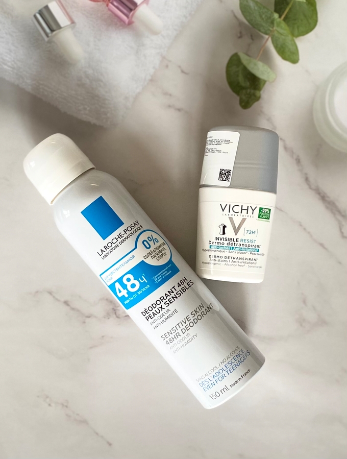 В общем, если нужна именно защита и «рабочий» антиперспирант на каждый день, то больше подходит дезодерант от Vichy (хорошая защита от пота, надёжная работа в жару, при этом комфортен для чувствительной кожи и без следов на одежде). Если нет реальных проблем с потоотделением, или кожа капризничает, раздражена или нужен максимально мягкий вариант, то за этим к спрею от La Roche-Posay. Для меня же идеально — иметь разные средства и использовать по ситуации.