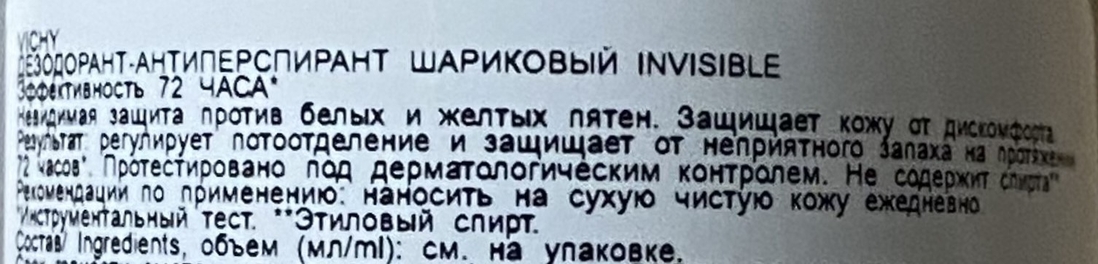 Vichy дезодорант-антиперспирант против белых и жёлтых пятен Invisible Resist Dermo Detranspirant 48h