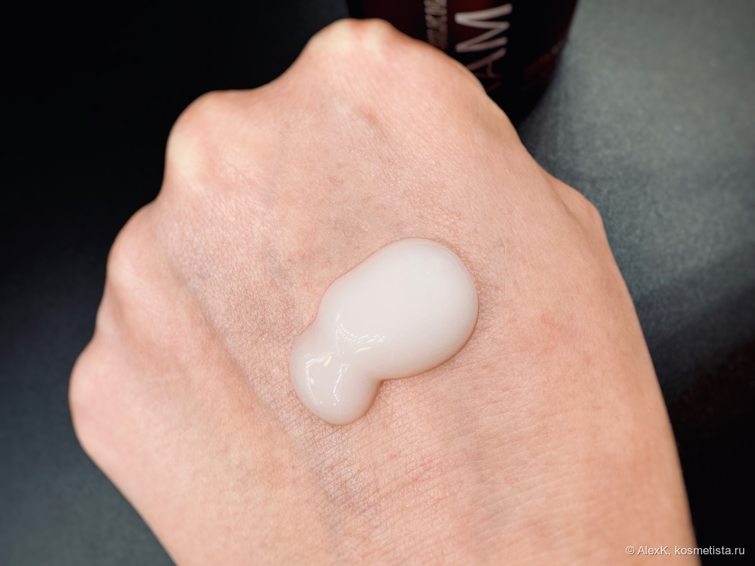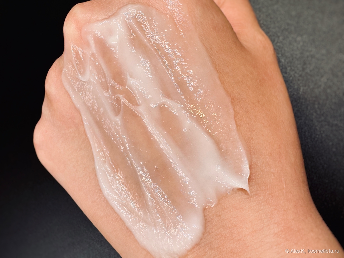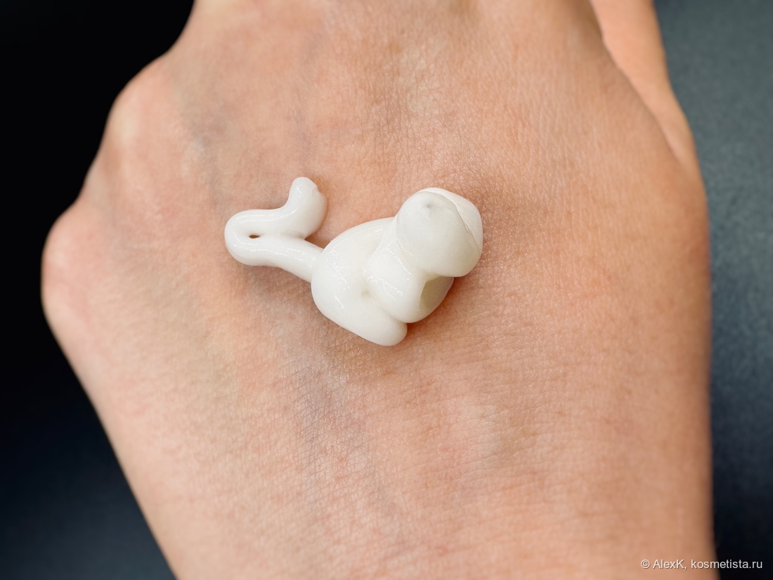 Текстура — лёгкий сливочный крем. При распределении может дать белый налёт, потом он исчезает. Финиш: сначала слегка липкий, затем матовый, восковой. Это удобно: гарантирует, что не заляпаешь важные бумаги жирными пальчиками.