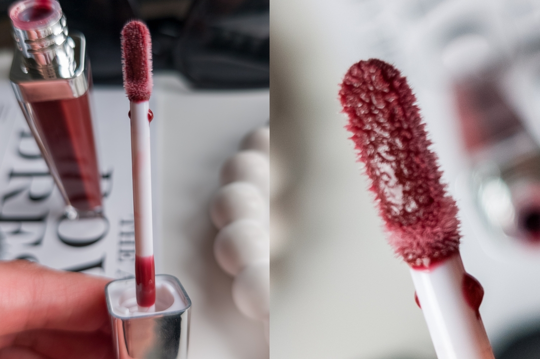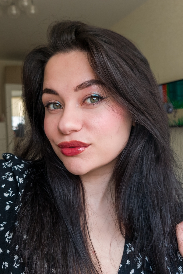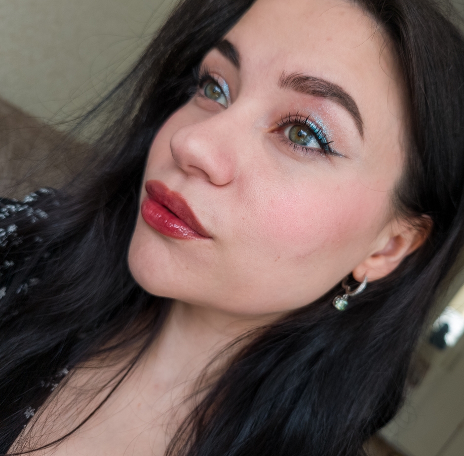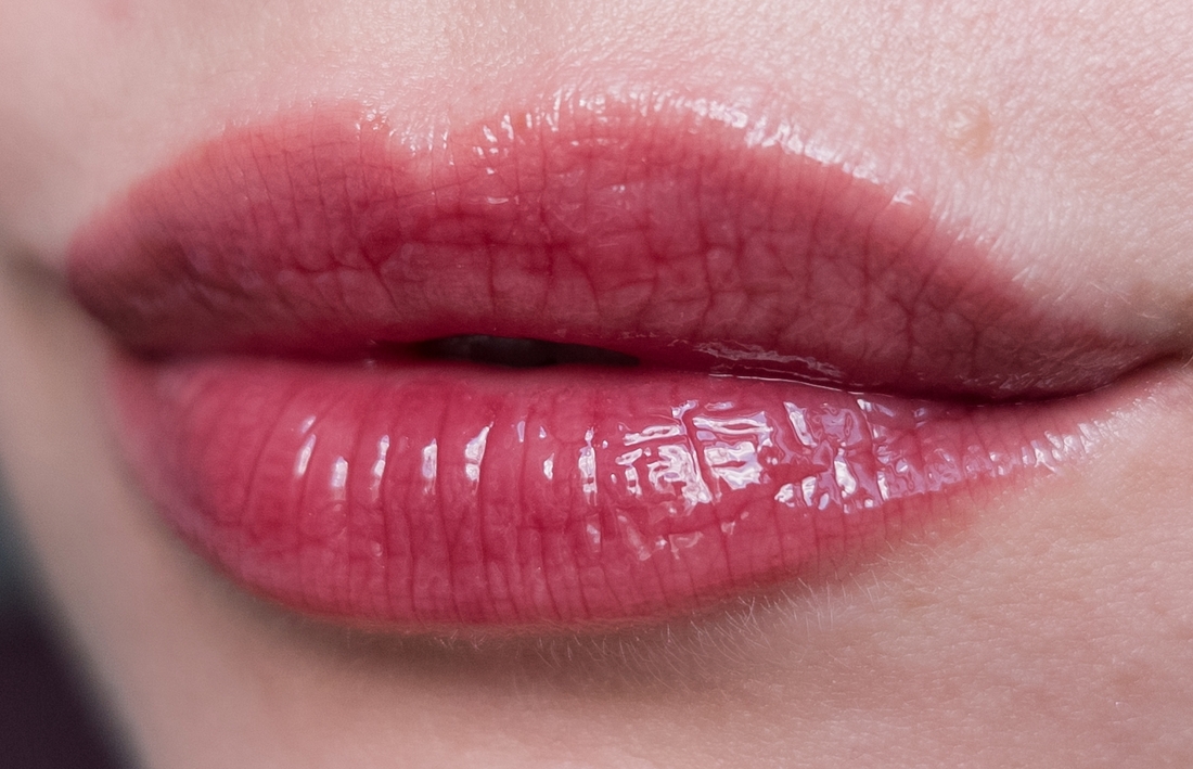 Ну и то, из-за чего блеск меня покорил — его роскошный оттенок сангрии, разбавленного винного напитка. Глянец достаточно умеренный, не стеклянный, и я считаю, что в контексте такого яркого оттенка, он здесь и не нужен. На губах он ощущается комфортно, как нечто силиконо-обволакивающее. В белую полоску не скатывается, ну короче, вместо лишних слов, я просто оставлю несколько снимков, чтобы вы посмотрели, как это красиво!