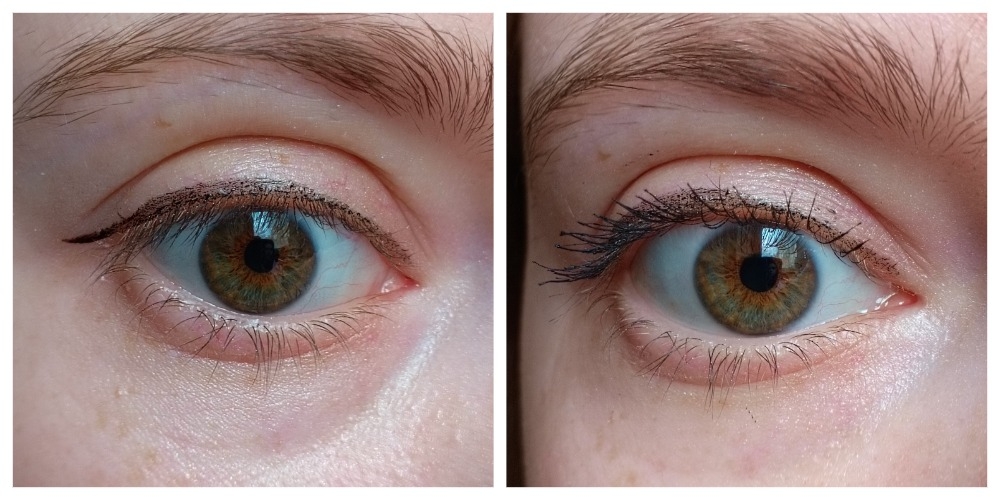 На коллаже выше слева только подводка, справа добавила тушь. У подводки конечно есть преимущество в виде очень тонкого кончика, которым действительно удобно рисовать, но мне хочется более плотного слоя. Видимо буду от нее избавляться, чтобы место не занимала.