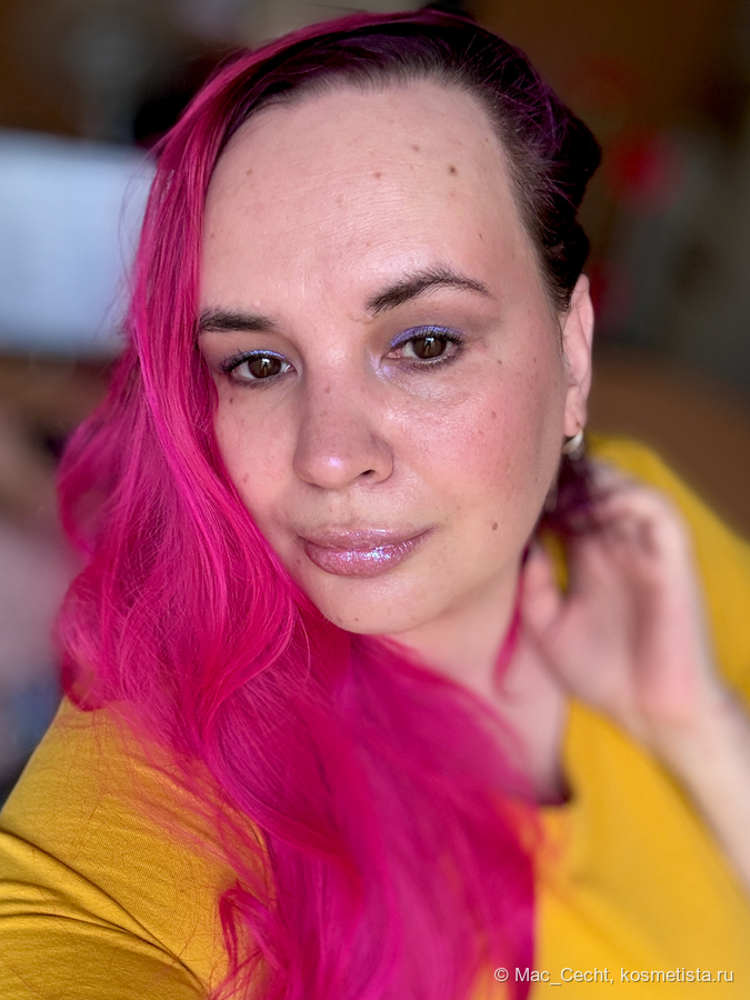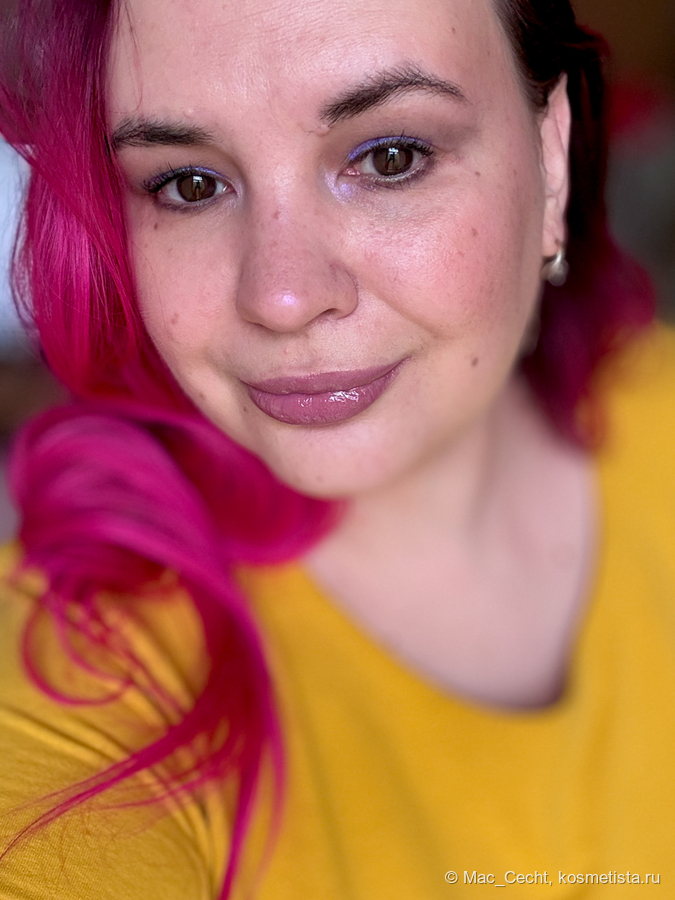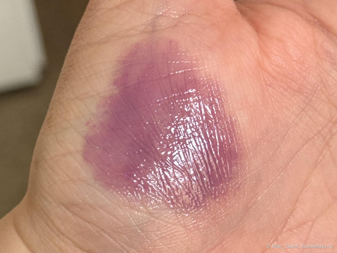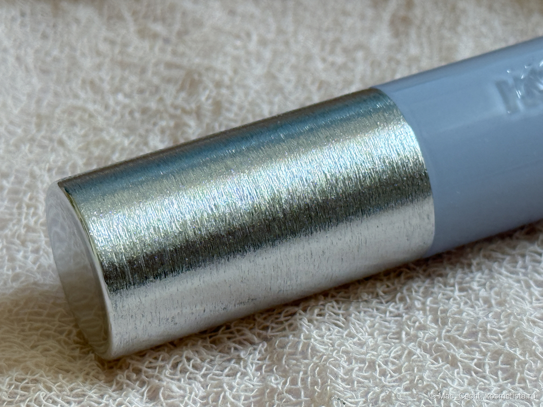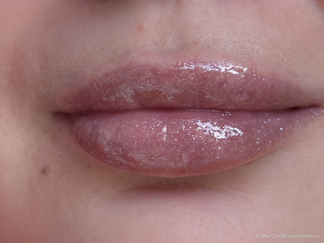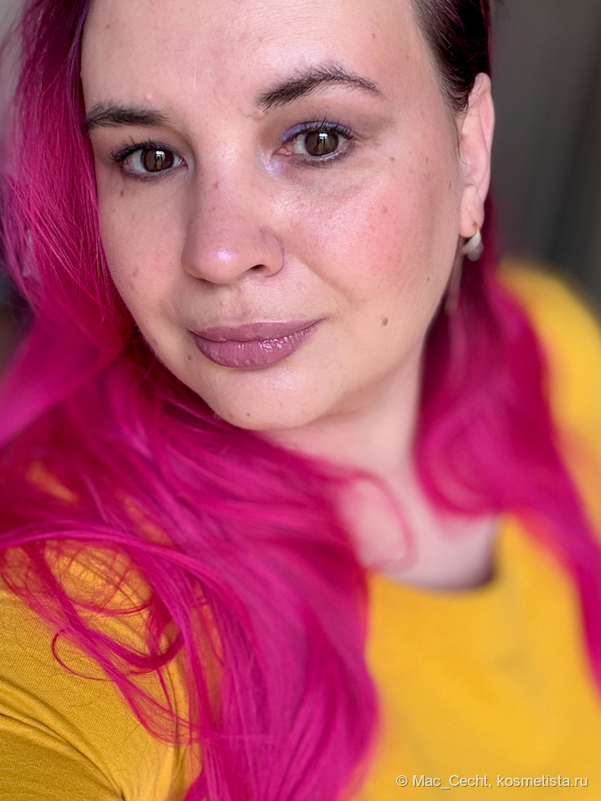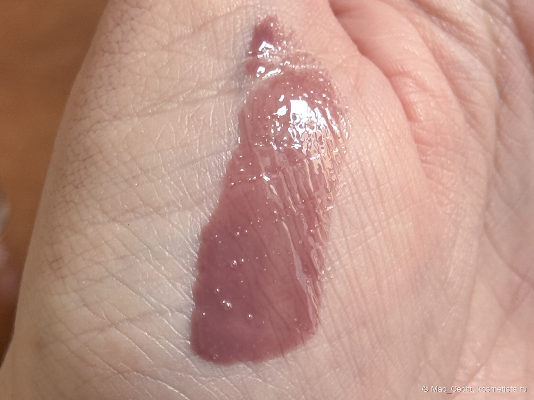 На официальном свотче на губах это был прохладный розово-сиреневый с розово-серебристыми шиммером, а на деле это теплый беж с серебристым шиммером.