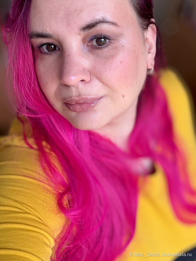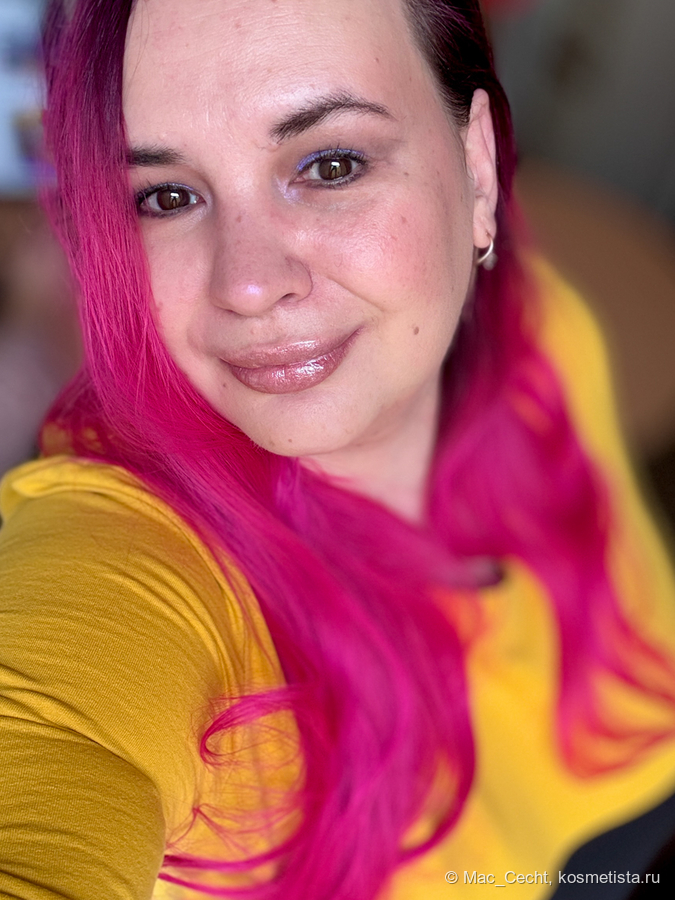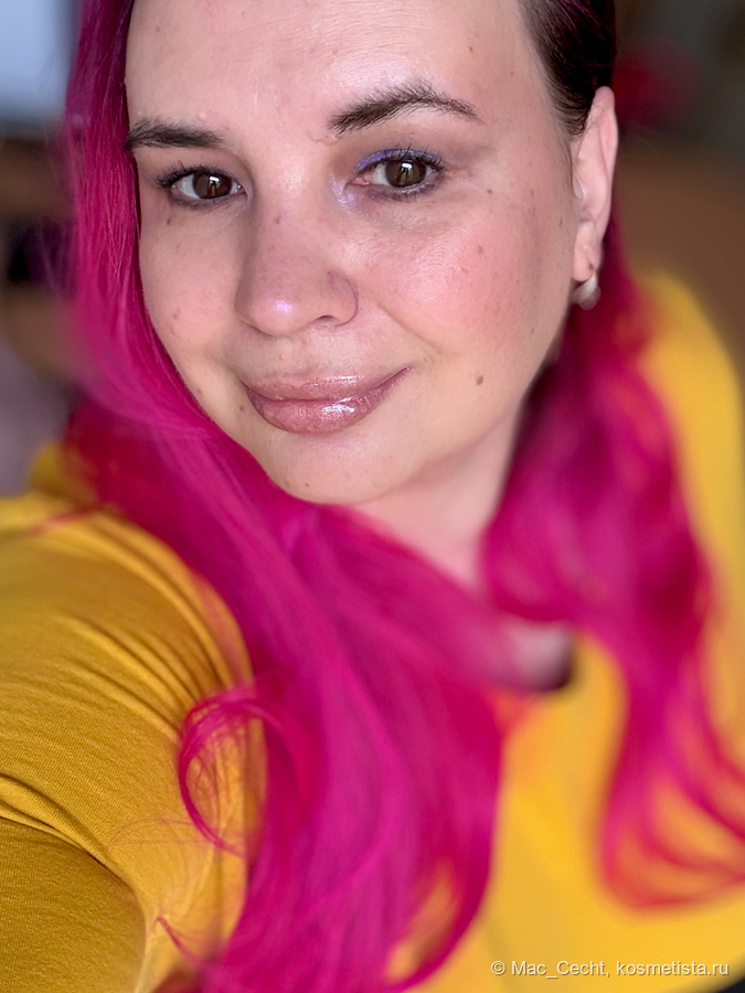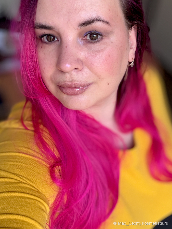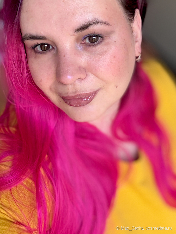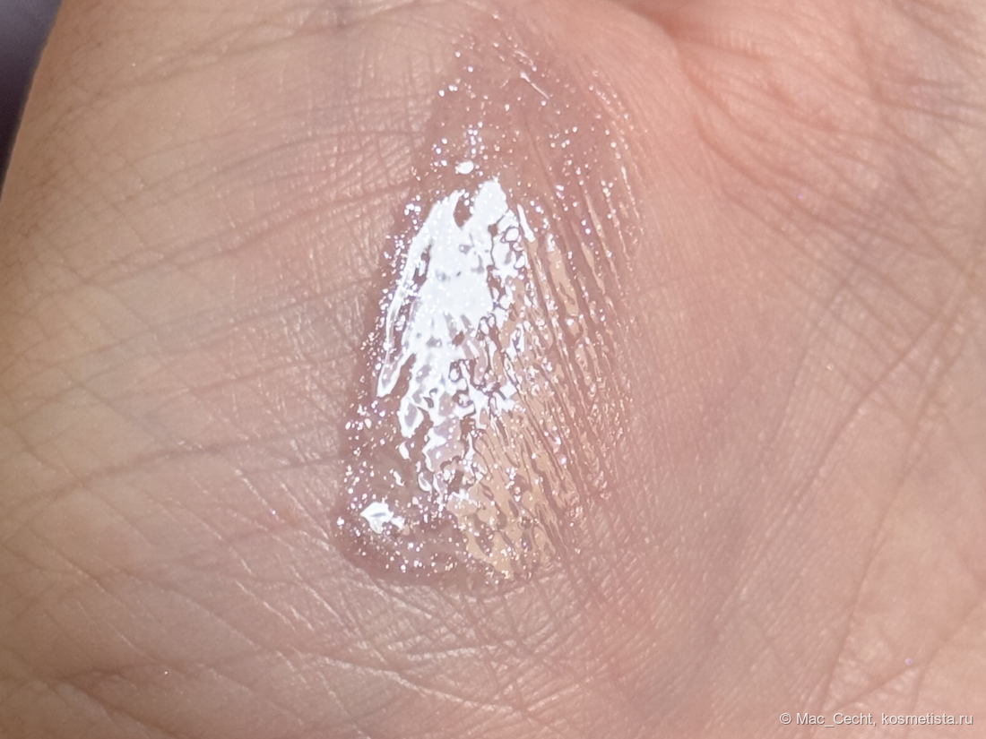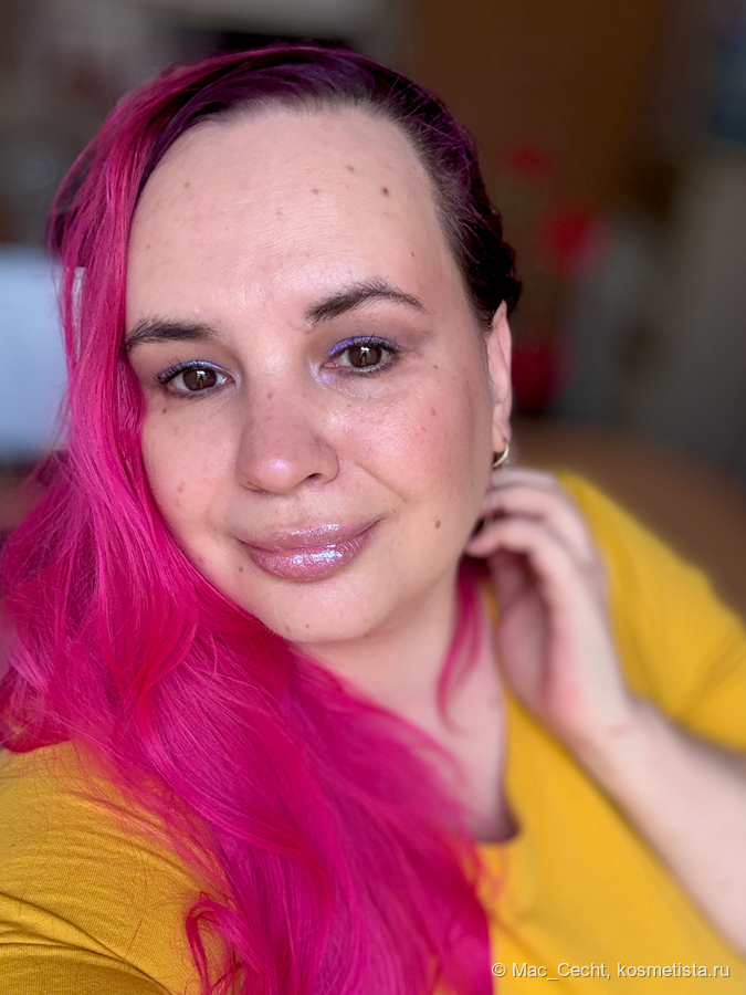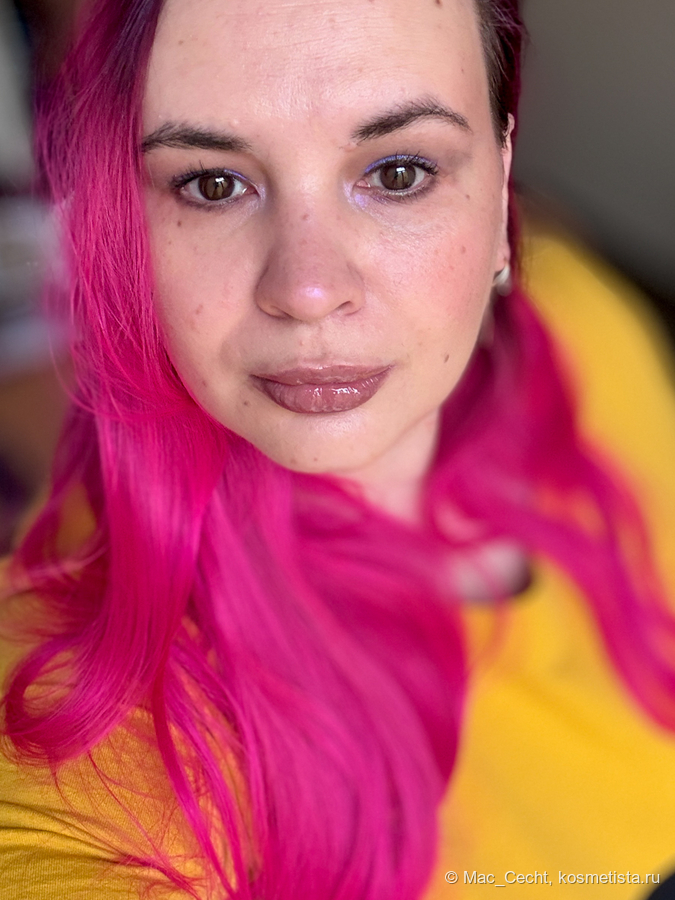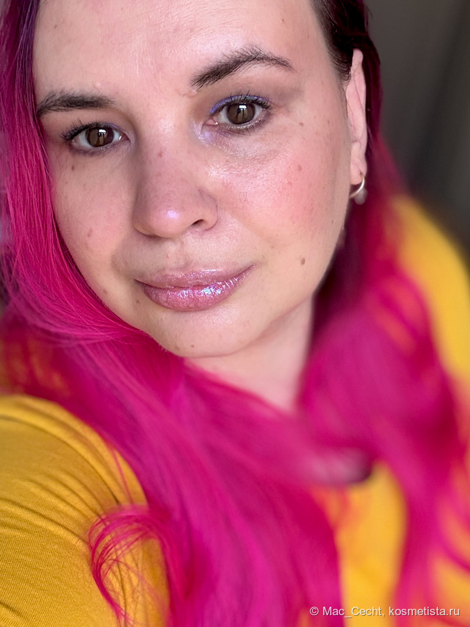На официальном свотче на губах это был прохладный розово-сиреневый с розово-серебристыми шиммером, а на деле это теплый беж с серебристым шиммером.