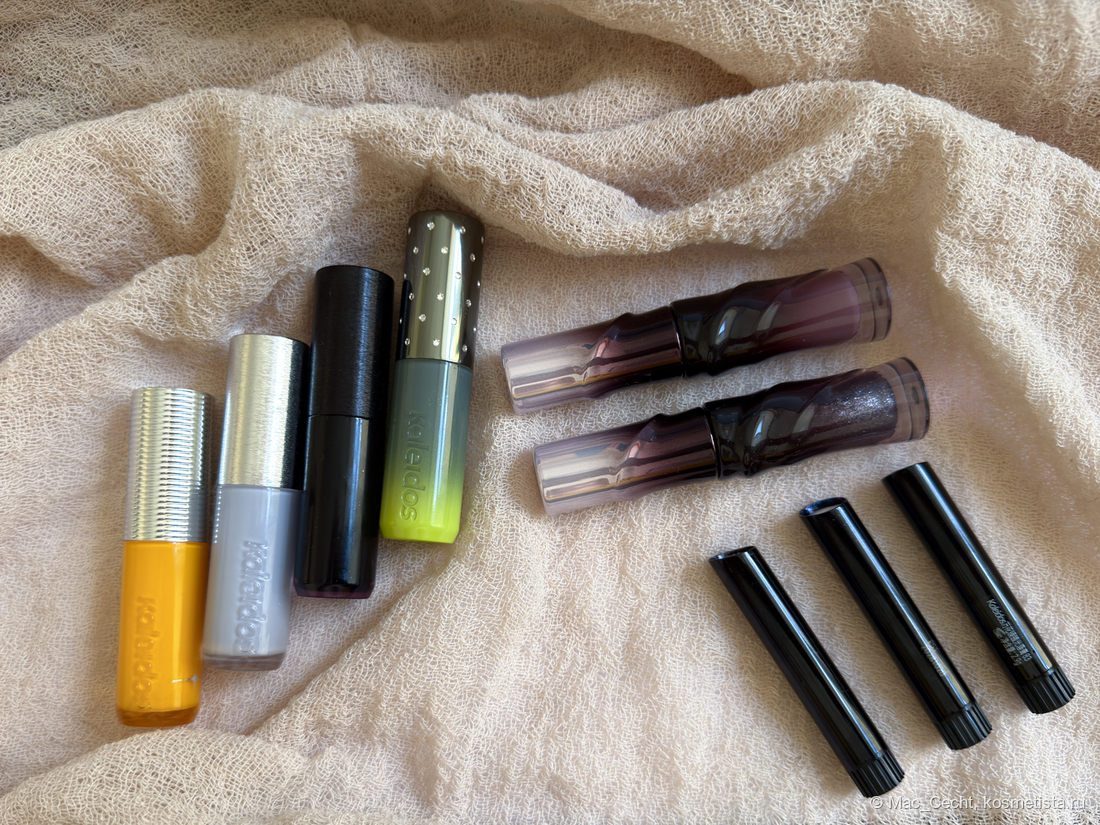 Я очень рада, что Kaleidos развиваются. У них выходят новинки, новые форматы. У марки есть и помады еще, и тени разных форматов, и румяна. Я стараюсь держать себя в руках, но за последние пару месяцев у меня появилась эта коллекция, несколько средств еще в пути, и только один блеск был подарком. 😅