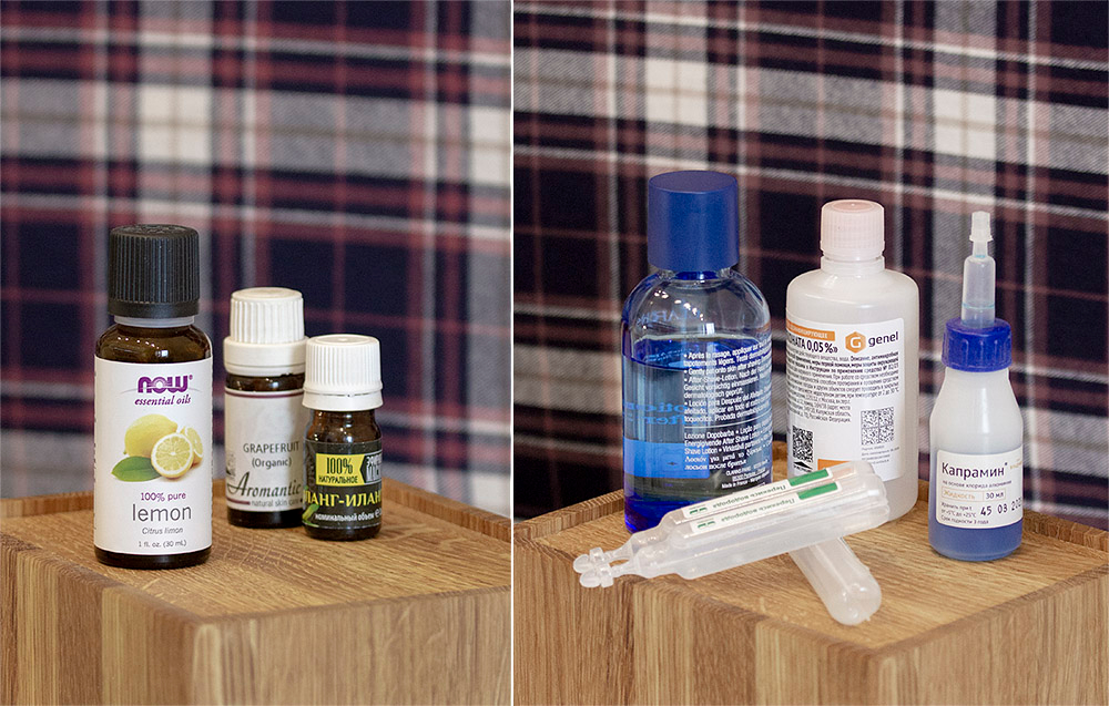 Эфирное масло — маленький пузырёк закидываю в каждый кейс, чтобы всегда был под рукой и сам чехол источал приятные ароматы.