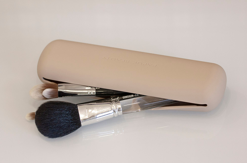 Вот так выглядит силиконовый футляр для кистей, которых у меня немного. Как видите, даже в максимальном по размеру чехле, кисти лежат довольно плотно. Оказалось, что такой размер кейса подходит буквально для всего. Туда входит большинство кистей, инструменты для педикюра и маникюра, зубные пасты и щётки в дорогу, письменные принадлежности, заколки, расчёски и всякие штуки для волос, минимальный набор декоративки и дорожные варианты парфюмов, наушники, зарядные устройства от техники и чёрт знает, что ещё. Универсальный размер! Ну, конечно, я взяла ещё.
