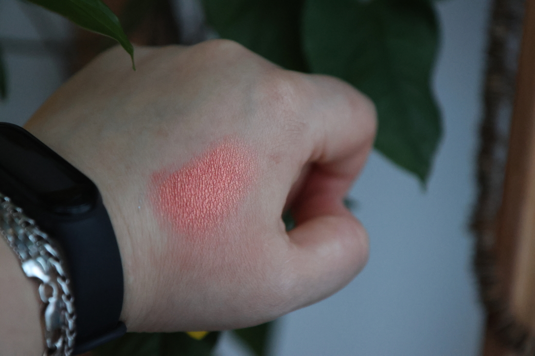 Чем привлеклиони меня глубокой осенью — ярким летним оттенком. Свотч горел огнем и шиммером, напоминая променад на набережной залива в закатный золотой час. Действительно, румяна очень настроенческие. Их и как тени можно.