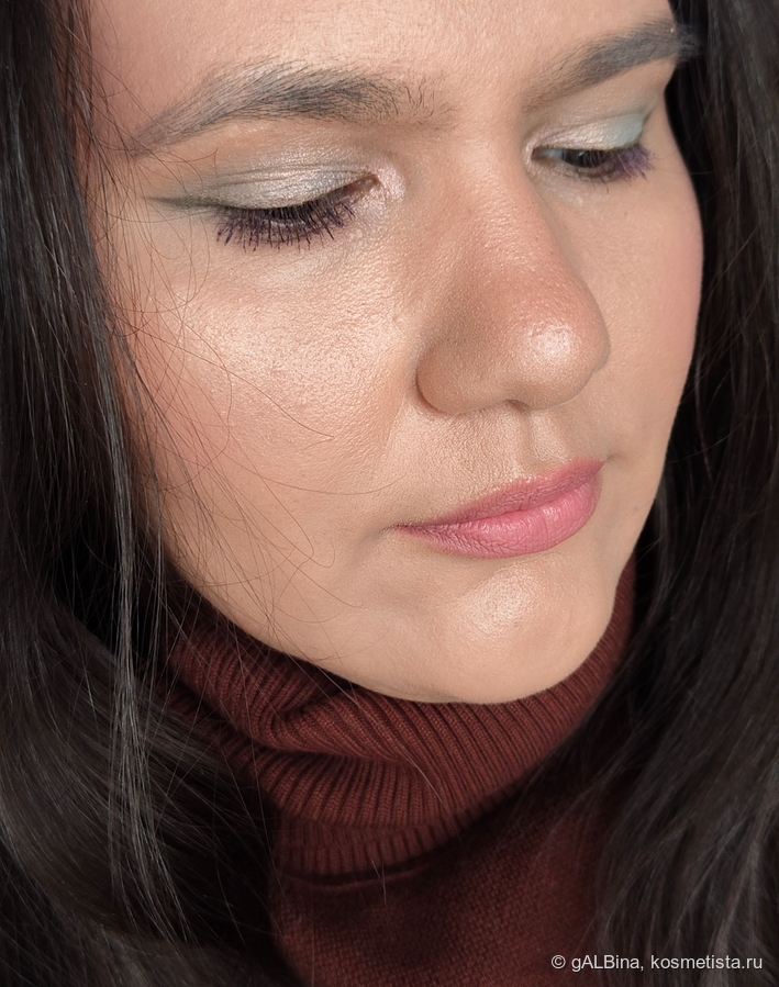 Мне нравится, что на мне оттенок раскрылся и не синим, и не фиолетовым, а каким-то болотным, с розовым бликом.