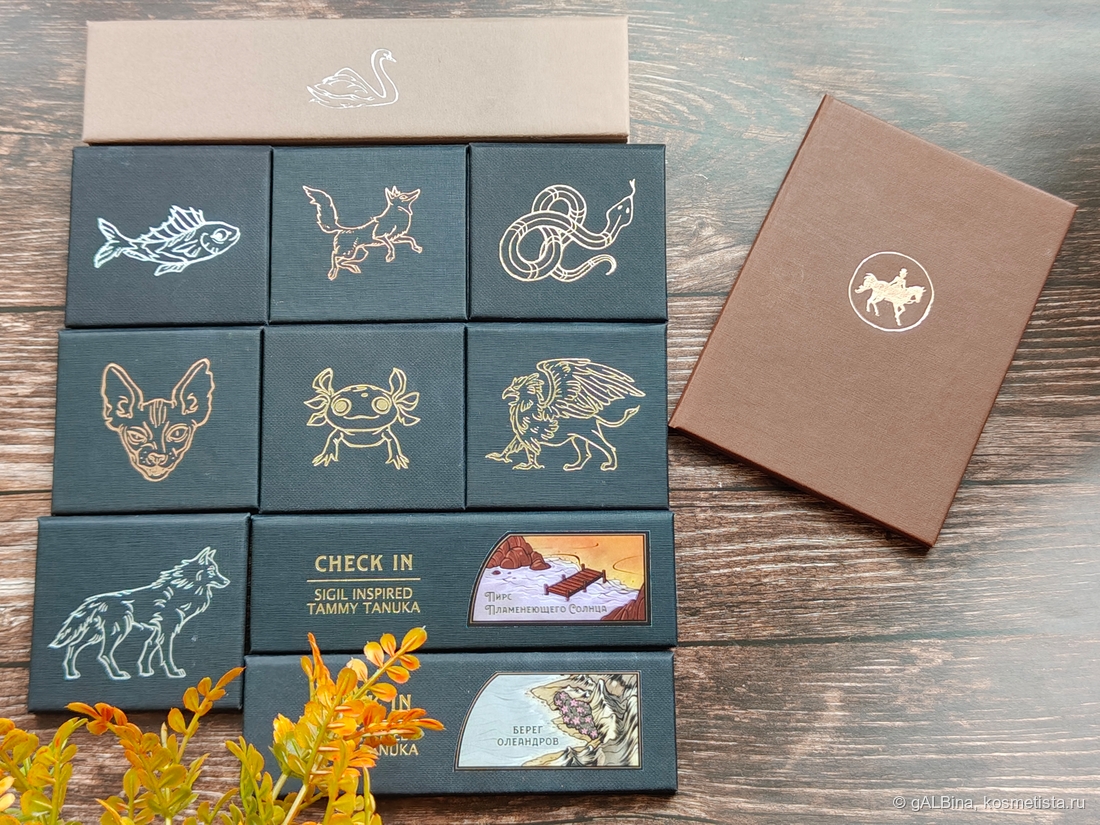 Я очень люблю такую золотистую зеленовато-коричневую гамму. Она довольно тёмная, но для моей смуглой кожи оттенки будут в тон моего синяка. Что хочется отметить, это конечно, эстетику. Всё очень красиво. Я ничего не выкидываю и всё храню, но просто складываю в коробочку отдельно и убираю. Для Тамми Тануки у меня своя полочка в моём небольшом шкафчике.