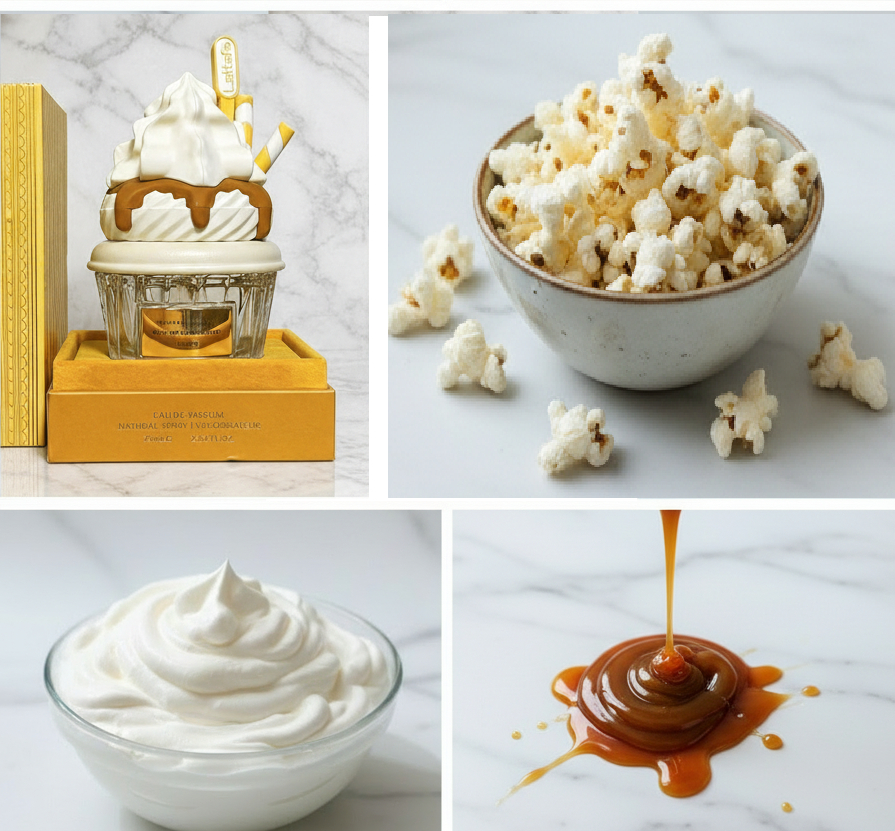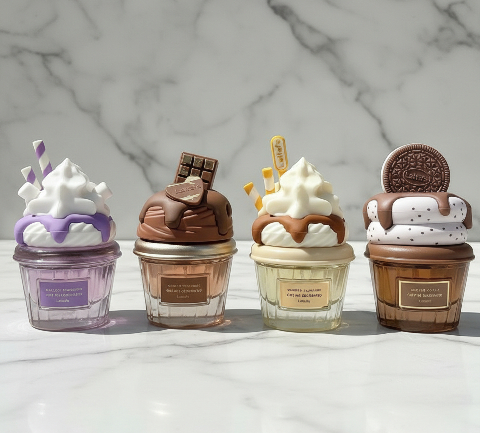 Над этим ароматом работала Парфюмер Nisrine Bouazzaoui Grillié. Этот флакон украшают взбитые сливки, сливочный крем, карамель и вафельные палочки.