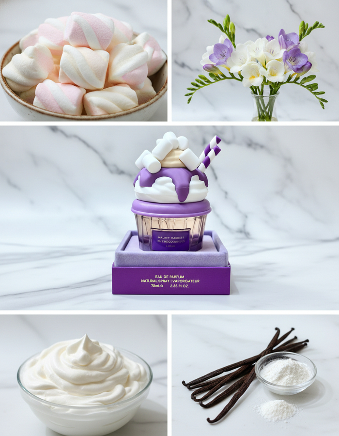 Над этим ароматом работала Парфюмер Nanako Ogi. Этот маффин или капкейк украшают зефирки-маршмеллоу, ягодный соус, взбитые сливки и вафельные трубочки..