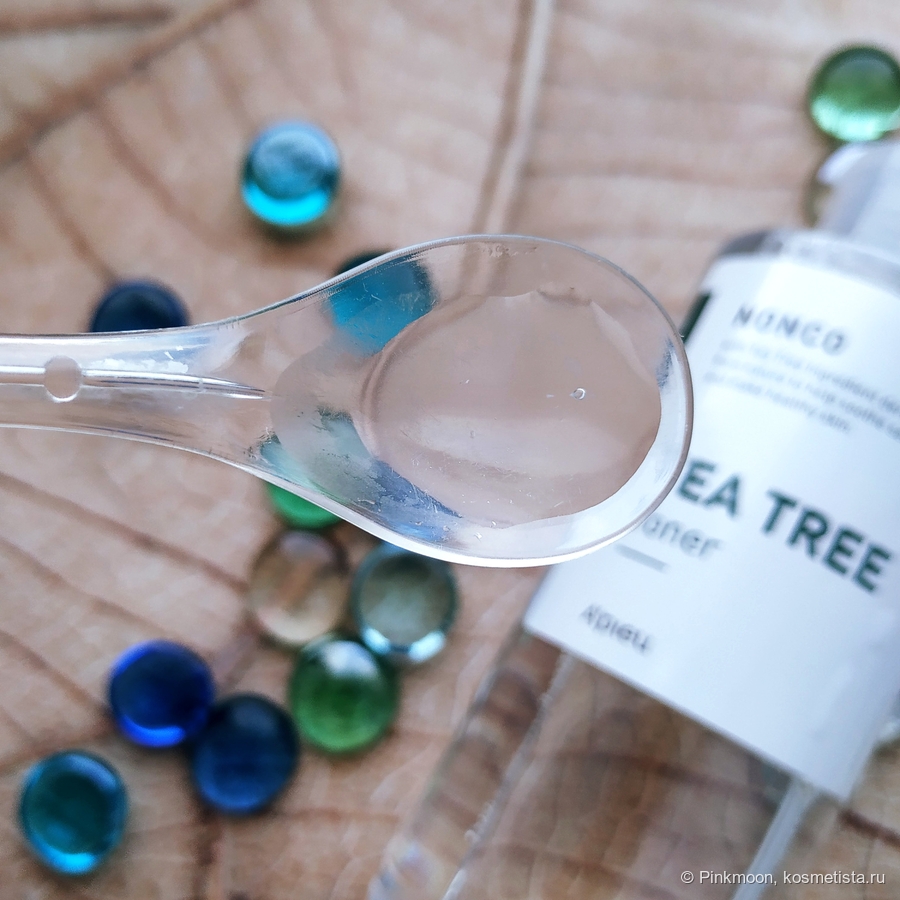 A'pieu Nonco Tea Tree Toner прозрачный, как слеза. Аромат довольно сложный и есть в нём какие-то медицинские нотки, но не спиртовые. Мне нравится.😀 Тонер жидкий, практически как вода. Чувствуется небольшая скользкость.