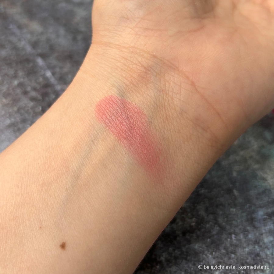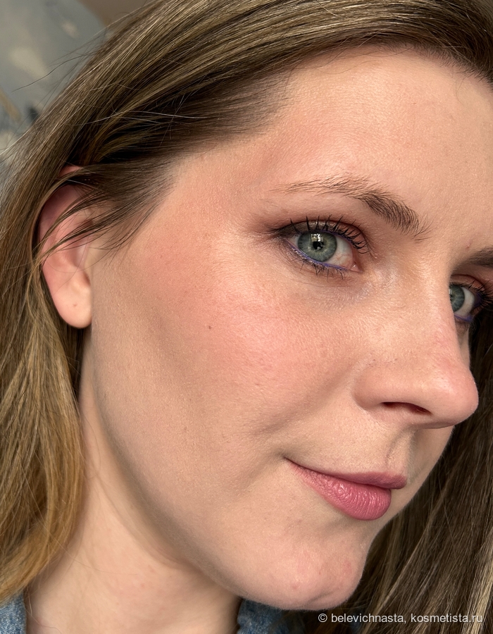 Тестура нежная, однородная, финиш не сияющий, а скорее сатиново-матовый, в макияже выглядят матовыми.