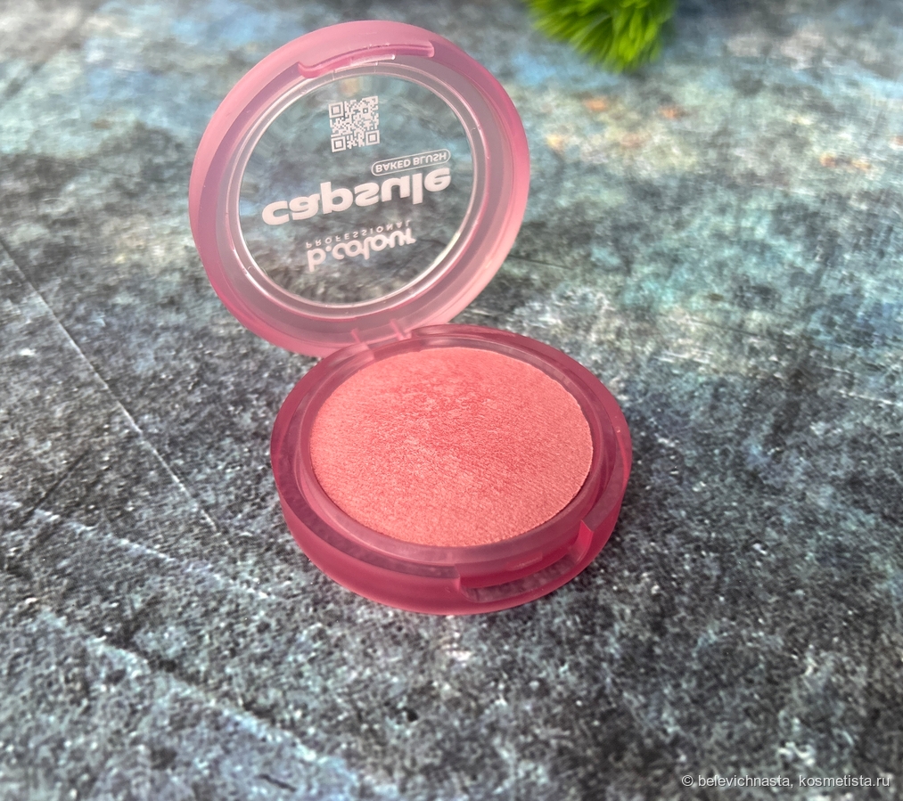 Румяна находятся в шайбочке и изначально были запакованы в слюду. Упаковка румян сделана из не очень качественного пластика, по ощущениям он довольно хрупкий и ненадежный. Но есть и неоспоримый плюс перед более основательной упаковкой муссовых румян — тут хотя бы не стираются надписи и есть наклейка с названием оттенка и составом.