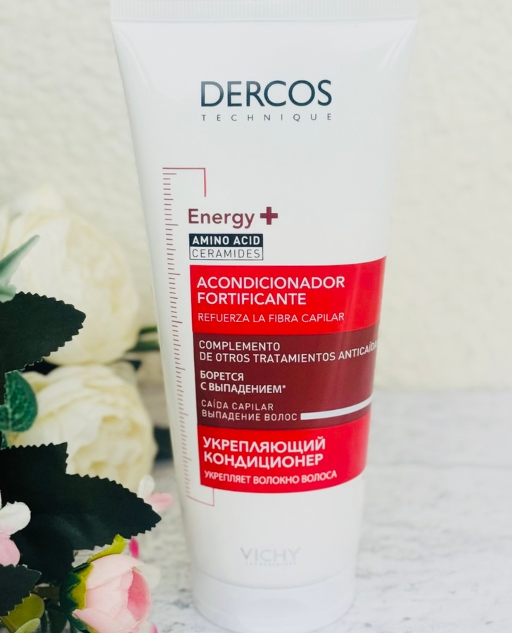 - Кондиционер для волос Vichy Dercos Energy+ интенсивно питающий, укрепляющий, против выпадения.
