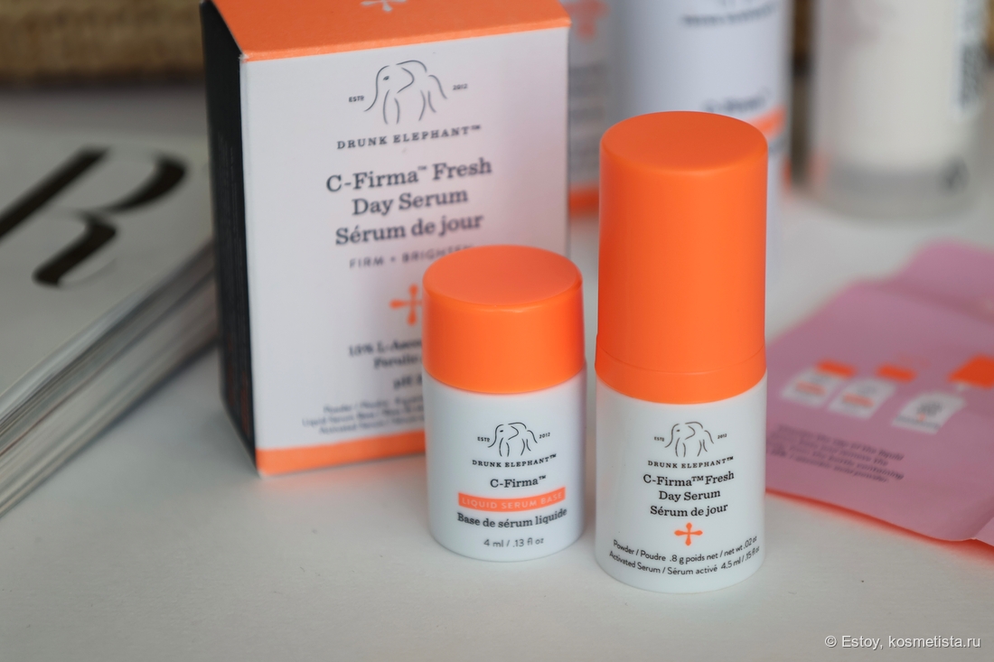 🌸 Drunk Elephant C-Firma™ Fresh Day Serum (4 мл.) — сыворотка с витамином С. В составе кислая форма аскорбиновой кислоты 15% — L-ascorbic acid.