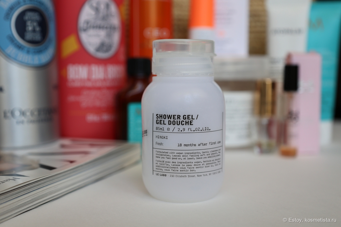 Le Labo Hinoki Shower Gel (85 мл.) — гель для душа с древесным ароматом. Неплохой состав без агрессивных ПАВ, гель нормально пенится и очищает. Унисекс аромат, но мне такое нравится. Пахнет мхом, лесом, древесными нотами. Действительно спокойный, умиротворяющий запах. Кожу не подсушивает, на теле не остаётся.