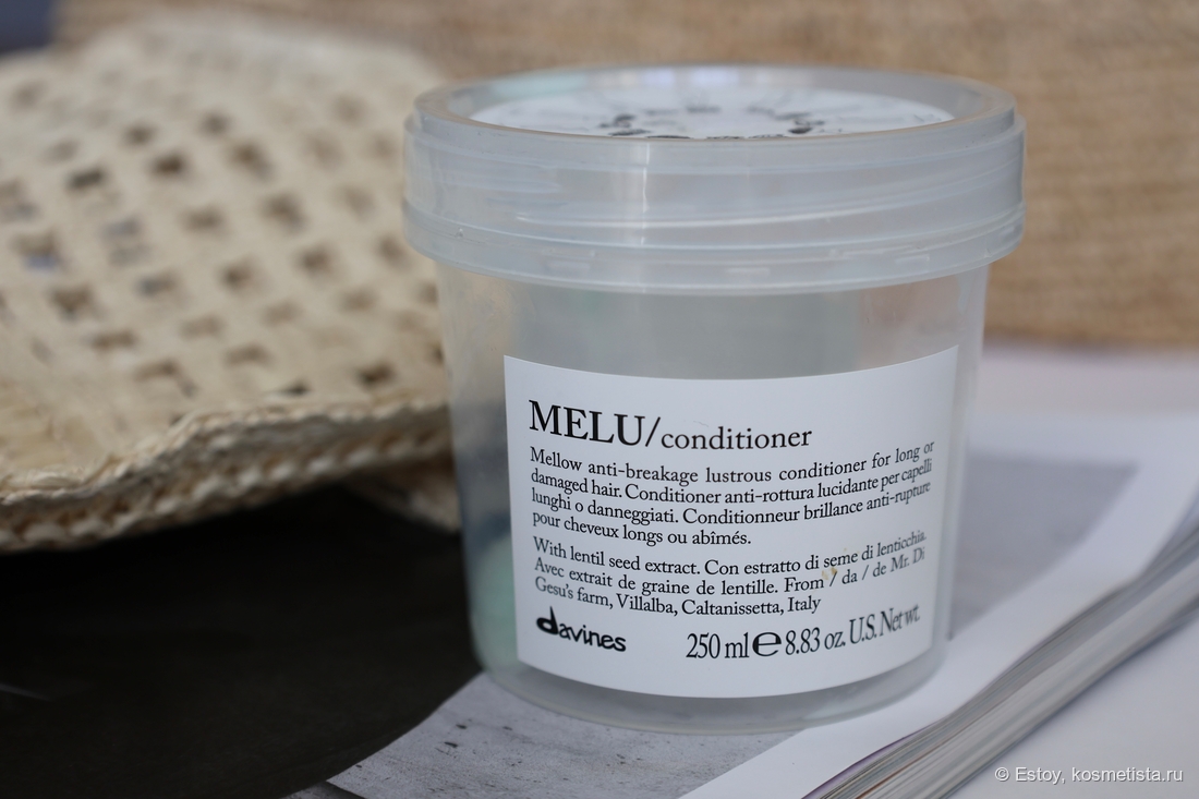 🌸 Davines MELU Conditioner (250 мл.) — кондиционер против ломкости длинных и повреждённых волос. Рабочая лошадка — не утяжеляет, базово ухаживает, разглаживает, укрепляет волосы, умеренно увлажняет. Это моя вторая баночка, не исключаю повтор.