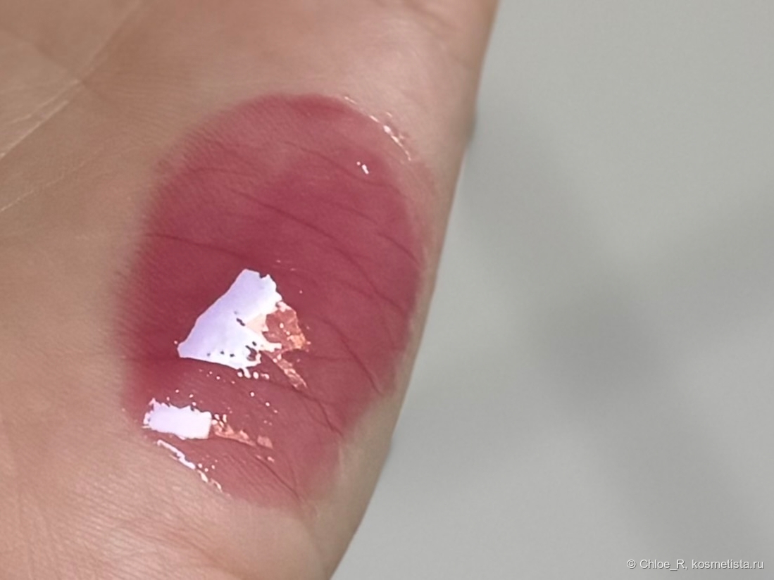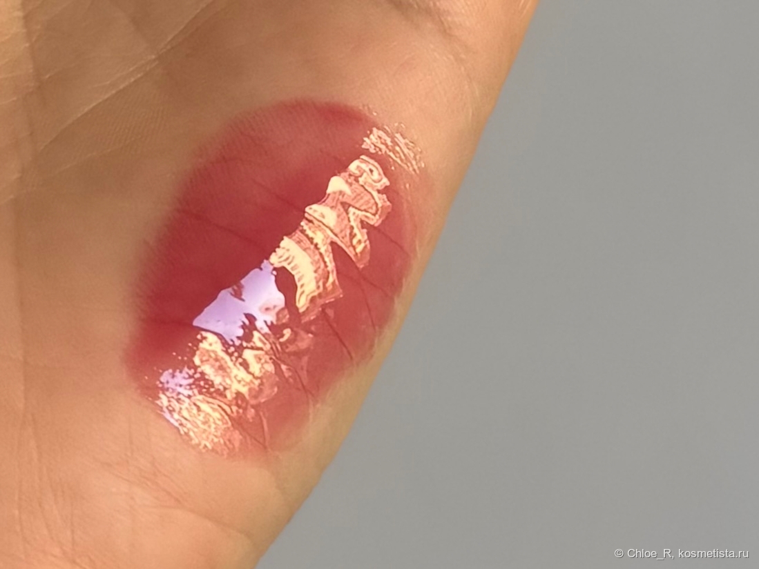 Это глянцевый блеск, скорее густой, если сравнивать с блесками Rom&nd, имеет сладкую приятную отдушку.