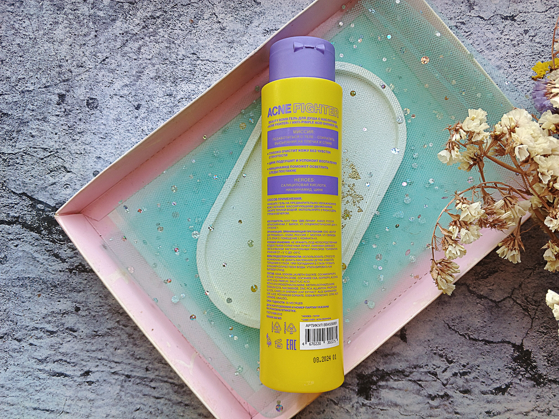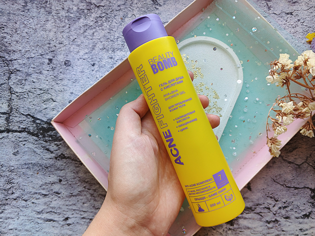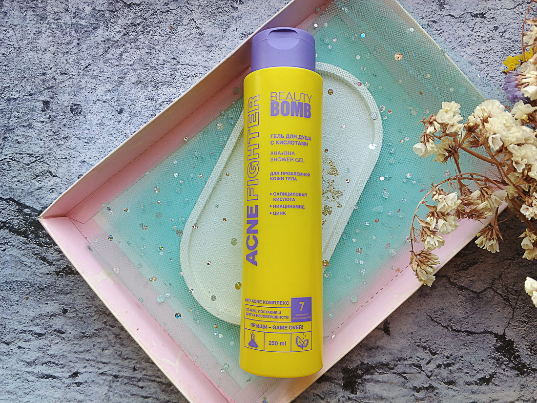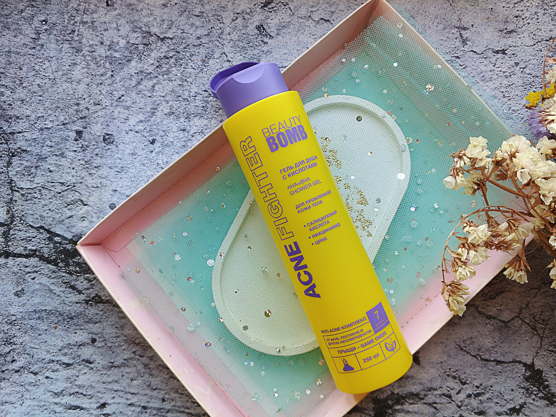 У меня проблемная кожа, поэтому средства для ухода за ней особенно актуальны. У Beauty Bomb есть неплохая серия Acne Fighter. В неё входят также продукты для ухода за телом. Я протестировала гель для душа и осталась им вполне довольна.