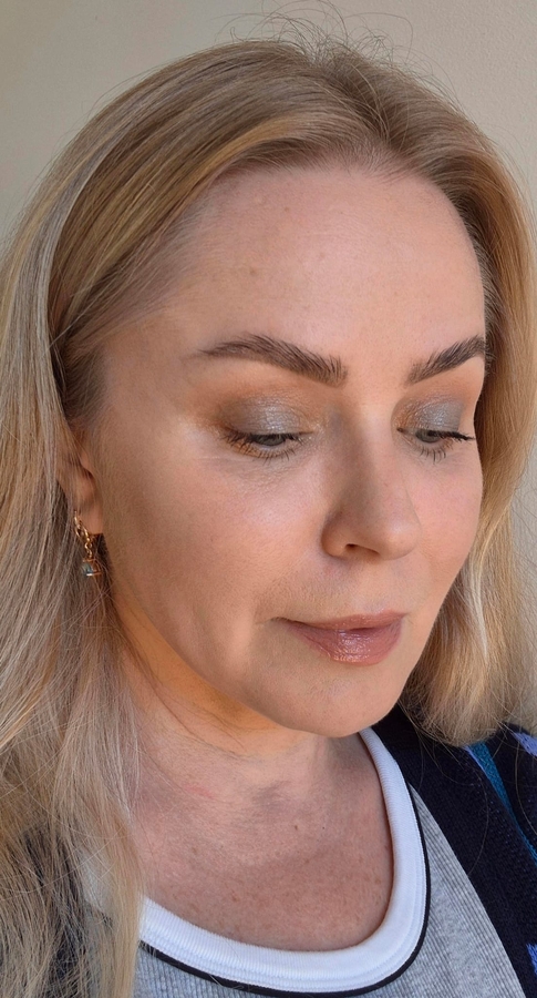 В общем образе тени точно не выглядят голубыми на веках, это явный серебристый серый.