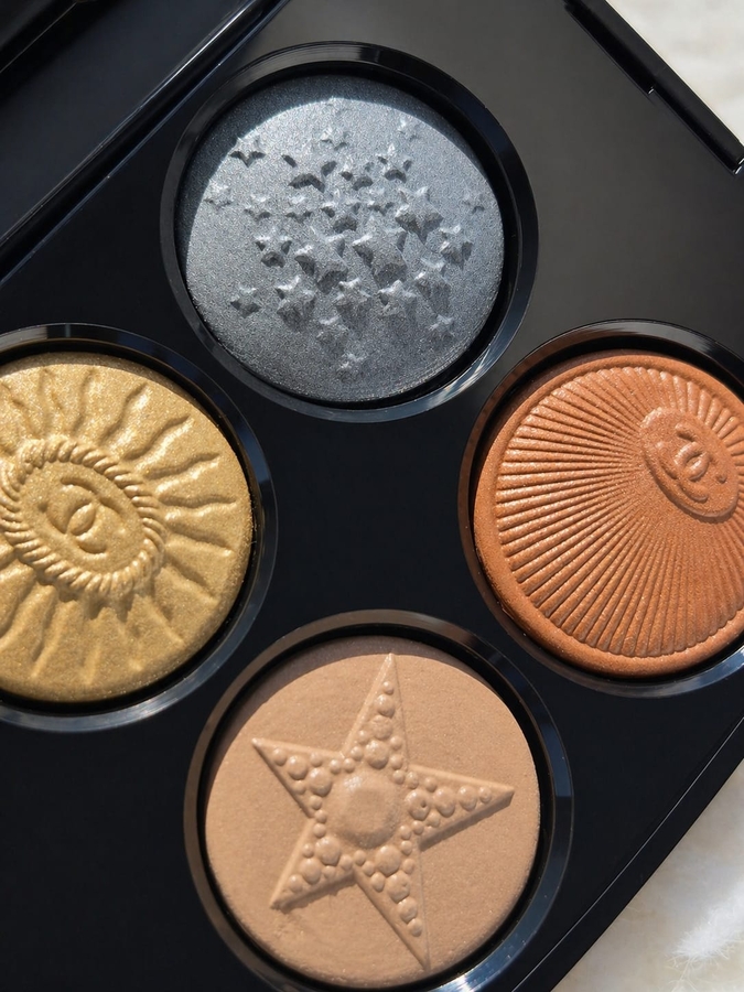 Цветовая гамма палетки, несмотря на её осенний запуск, навевает мысли об отпуске: солнечный золотой, прохладный голубой, как небо или морская гладь и бронзовый оттенок загорелой кожи. Возможно, играют на наших ностальгических чувствах о прошедшем лете)
