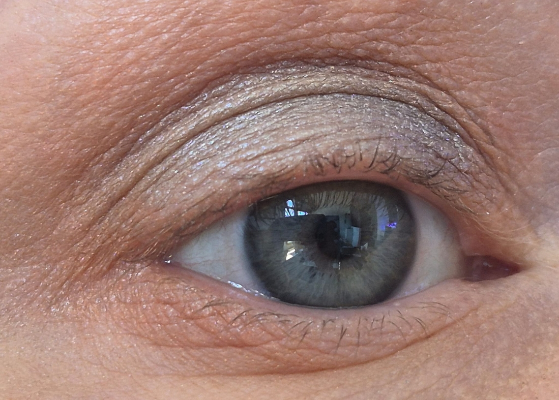 Очень блестящий на веке даже в тени. Издалека даёт какой-то даже водный отблеск. Лучший в этой палетке, но не лучший в большом косметическом будуаре.