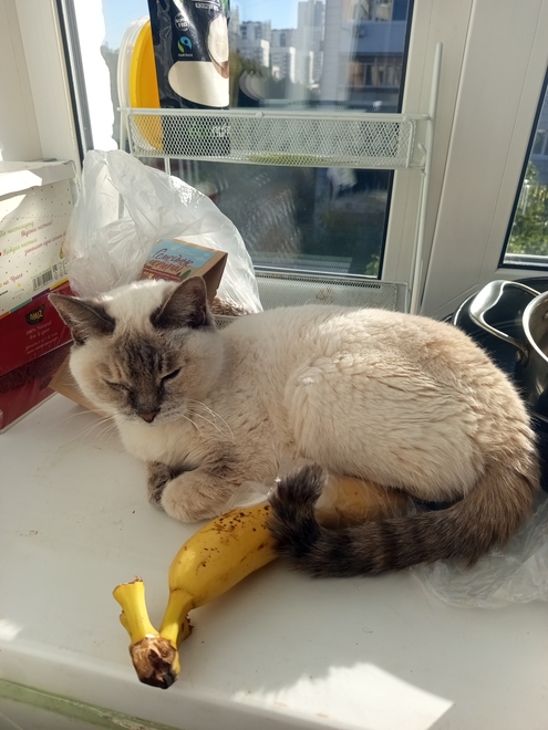 Один сначала назван был Пиратом, по фото, а по факту оказался Петенькой. Неручной, но офигительно ласковый и незлопамятный, любит прикидываться валенком. Любит мягкие игрушки (и домогается до них), и таскает клубочки для вязания. С мягкими игрушками вообще был цирк, один раз он их разложил полукругом на полу и в середину улёгся. Чисто король Артур и плюшевые рыцари 😁
