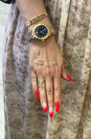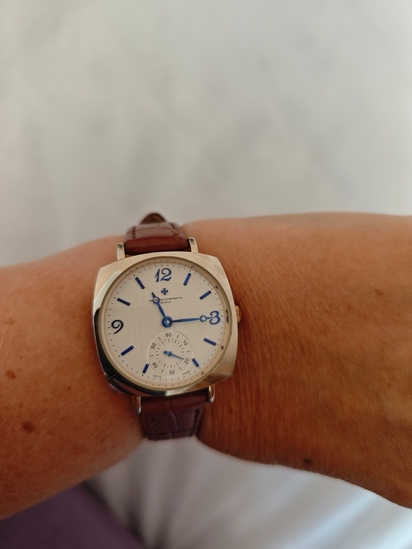 Красота неимоверная, застегивались так что не снимешь. Ехала в тот день на такси, из мертвой пробки пошла в метро (час пик). На выходе из метро, чувствую съезжают мои часы с руки… схватила прям за кончик застежки. Все проверили у ювелира — все в норме. Надеваю редко. Трясусь