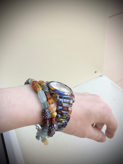 Сейчас в ходу только одни часы, недорогие из санлайта, подходят под определенный комплект украшений (вернее, не комплект, но разные изделия хорошо смотрятся вместе) — ношу с черной водолазкой.