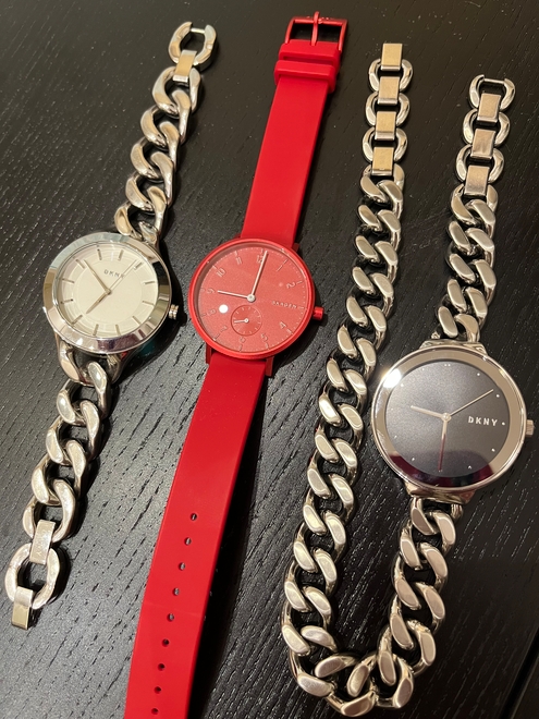 Нравится скандинавский дизайн, но и Донна Каран цепные (тяжелые🤪) затесались по старой памяти — первые мои часы, подаренные мамой, тоже были на браслете — двойной цепи от Timex.