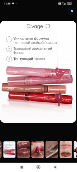 Дали в подарок, цвет не мой — фуксия, но подошёл (что странно). Не сушит, наносить удобно, держится очень долго, если жирное не есть. Можно носить с родным глянцем, который постепенно исчезает и тогда тинт даёт более яркий оттенок. Можно промокнуть салфеткой и оставить тинт (мой вариант) и тогда он более приглушенный. Сверху ношу блески, гигиенические помады и бальзамы.