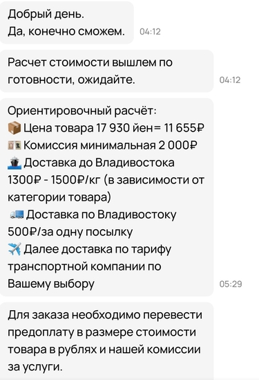 Сейчас посылаю, работают они по часовому поясу Токио, так что уже через несколько часов можете сделать заказ.