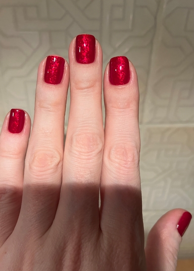 С технологиями производства не знакома, но как будто можно же чуть-чуть порозовее. Почему так? Не первый раз встречаю желтизну в лаках с голубыми и синими переливами.