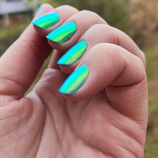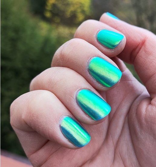 Один слой Пираньи поверх двух слоев Клевера. Оранжево-розоватый перелив запечатлеть не удалось😪