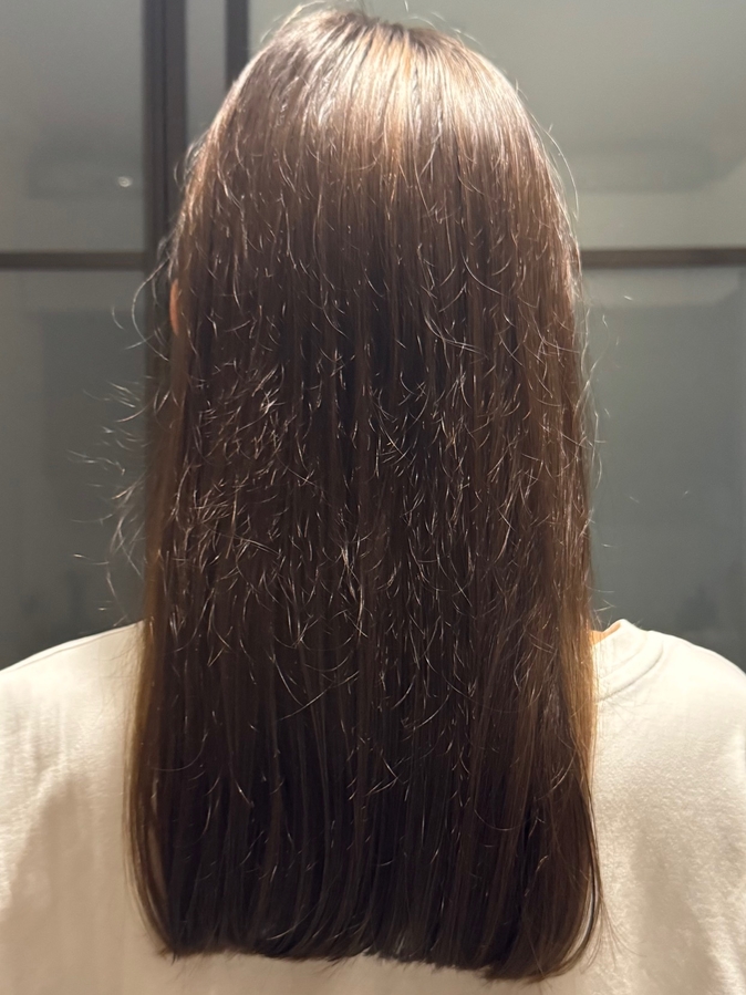 Собственно, вопрос в названии темы. Попросила сфотографировать волосы сзади и ужаснулась, по всей длине секущиеся волосы, которые торчат в разные стороны. Прическа выглядит неопрятно. Или это не секущиеся, а растущие новые? Раньше такого не было. Волосы прямые тонкие стекловидные, крашу раз в месяц корни на 3% оксиде перманентной краской, длину тонирую раз в 3 месяца на 1,5% полуперманентной безаммиачной краской, т.к. есть седина. Посоветуйте пожалуйста, что с этим можно сделать для придания волосам приличного вида? Может быть какие-то несмываемые средства или маски, укладки или особый вид стрижки? (Дефициты закрыты, питаюсь разнообразно, щитовидка в норме, со здоровьем никаких серьезных проблем нет. В анамнезе после ковида в 2020м было сильное выпадение волос — выпало около 30%, за 5 лет отросло в более менее плотный срез)