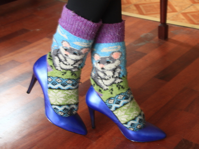 Но для праздника, даже если дома, нравится какой-то интересный образ собрать (создать себе праздничное настроение, а то последние годы с этим беда). Гаммы предпочитаемой нет, больше люблю какую-то нестандартную фишку добавить: переливающаяся красно-синяя юбка, или в декольте длинных бус напихать, чтобы они оттуда весело свисали, или шпильки на шерстяные носки (дома холодно) — китч так китч