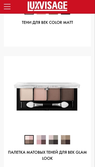 У меня нависшее веко, никакие не скатываются. В катрис плотные сияющие, матовые более лёгкие и умеренно пигментированные. В астра пигментированные матовые, но немного рыхлые и пыльные. Сатины более тонкие и не супер сияющие, днем можно спокойно носить. У воеводиной пигментированные, но слегка пыльные матовые. Тушуются хорошо.