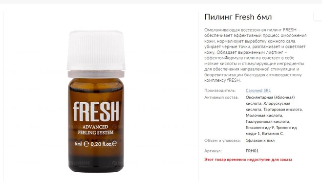 В описании препарата заявлено: обеспечивает эффективный процесс омоложения кожи, нормализует выработку кожного сала, убирает черные точки, разглаживает и осветляет кожу. Обладает выраженным лифтинг – эффектомФормула пилинга сочетает в себе мягкие кислоты и стимулирующие ингредиенты для обеспечения направленной стимуляции и биоревитализации благодаря антивозрастному комплексу.