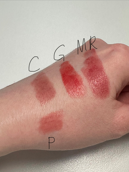 PT — Pillow Talk Charlotte Tilbury (видно, что замазка в сравнении с полупрозрачными)