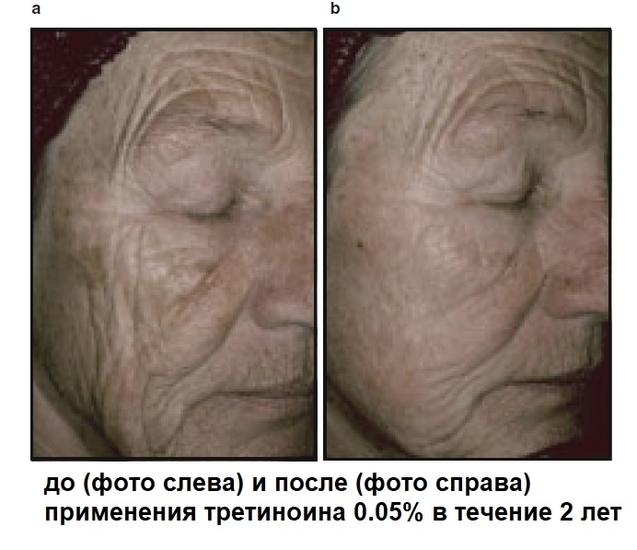 Вообще анти-эйдж + эффект против высыпаний + выравнивание тона лица и осветление постакне = все это разом делают ретиноиды (третиноин/адапален/тазаротен). Они являются «золотым стандартом» для анти-эйджа, так и лечения акне вот уже много лет в дерматологии. Пожалуй, из наружных дерматологических средств это самая исследованная категория. Более полувека исследований, тысячи публикаций, включающие и изучение биопсийных материалов (т.е. образцов кожи, изъятых у людей) после использования, поэтому мы вполне хорошо представляем, что данные препараты делают «в глубине». Эффект ретиноидов не поверхностный, а накопительный и долгоиграющий, связанный со стимуляцией синтеза коллагена, проявляется даже на людях пожилого/старческого возраста: