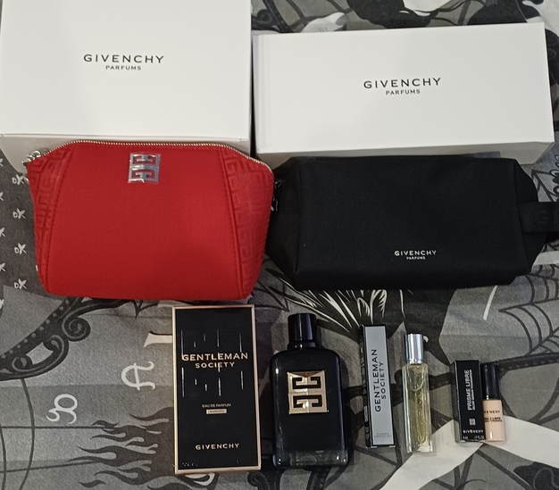 Этот живанши, кстати, не раз в пробниках попадался при покупка онлайн в рг, понравился и мне, и мужу, поэтому решила офлаконить, и вот так удачно-косметички, миниатюры 12.5мл мужского парфюма и тона.