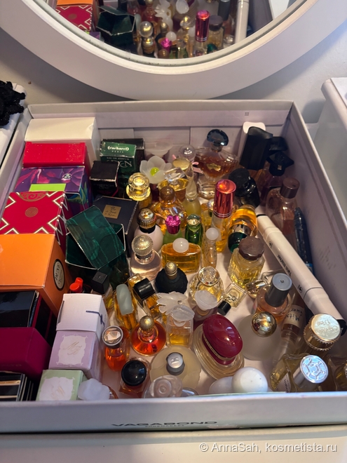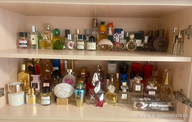 Конечно, по меркам Костисты у меня коллекция скромная- штук 30, но все в полном объёме, не люблю отливанты)) И каждый раз рука тянется к чему-то новому — либо поддержать имеющееся настроение, либо, наоборот, создать его, это для меня отдельный вид удовольствия) Ну и плюс такой коллекции — я все ароматы помню и каждый флакон ассоциируется с какими-то приятными воспоминаниями